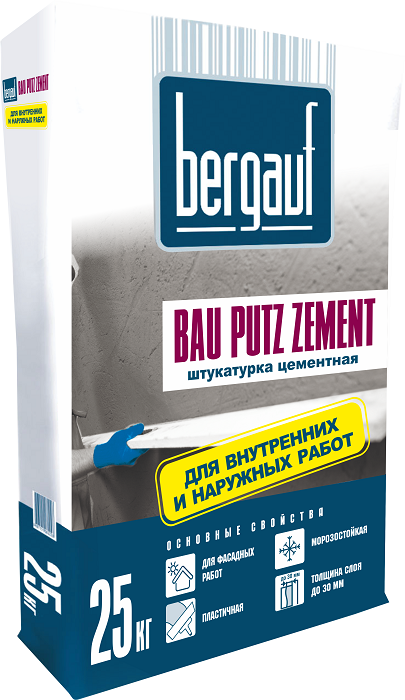 Штукатурка цементная, 25 кг Bergauf Bau Putz Zement (1п/56 шт)