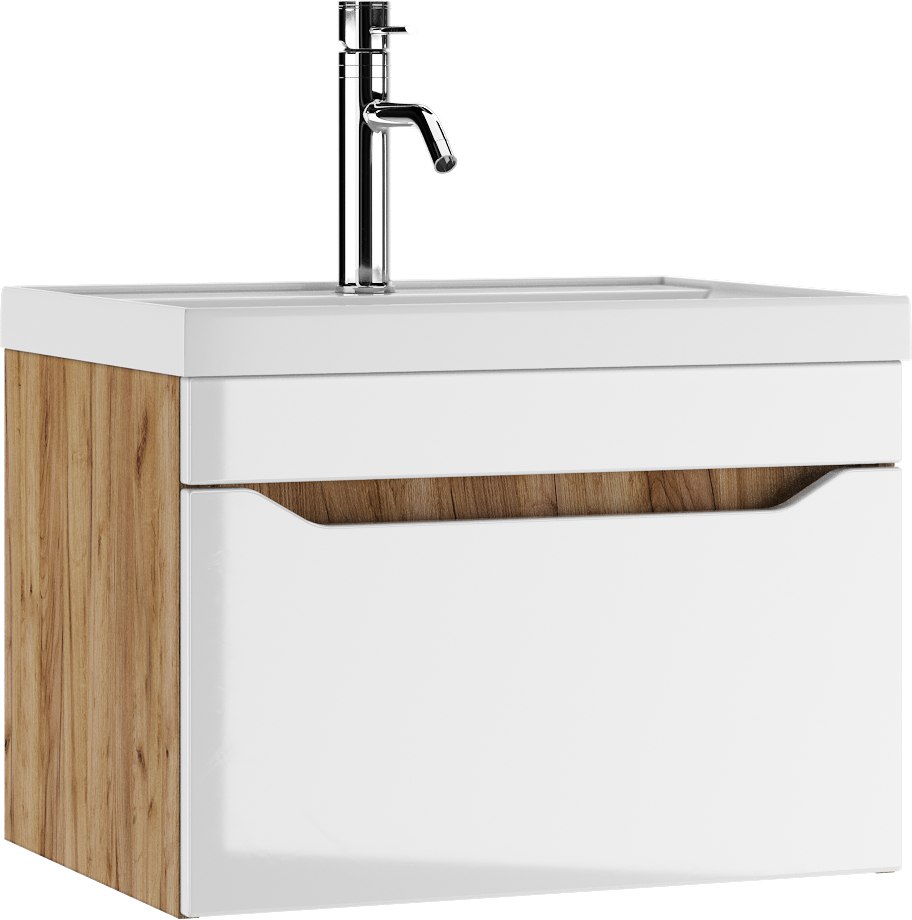 Тумба подвесная под умывальник "Bazis 60" Ева с одним ящиком В1 Дуб Вотан Айсберг DA5906T